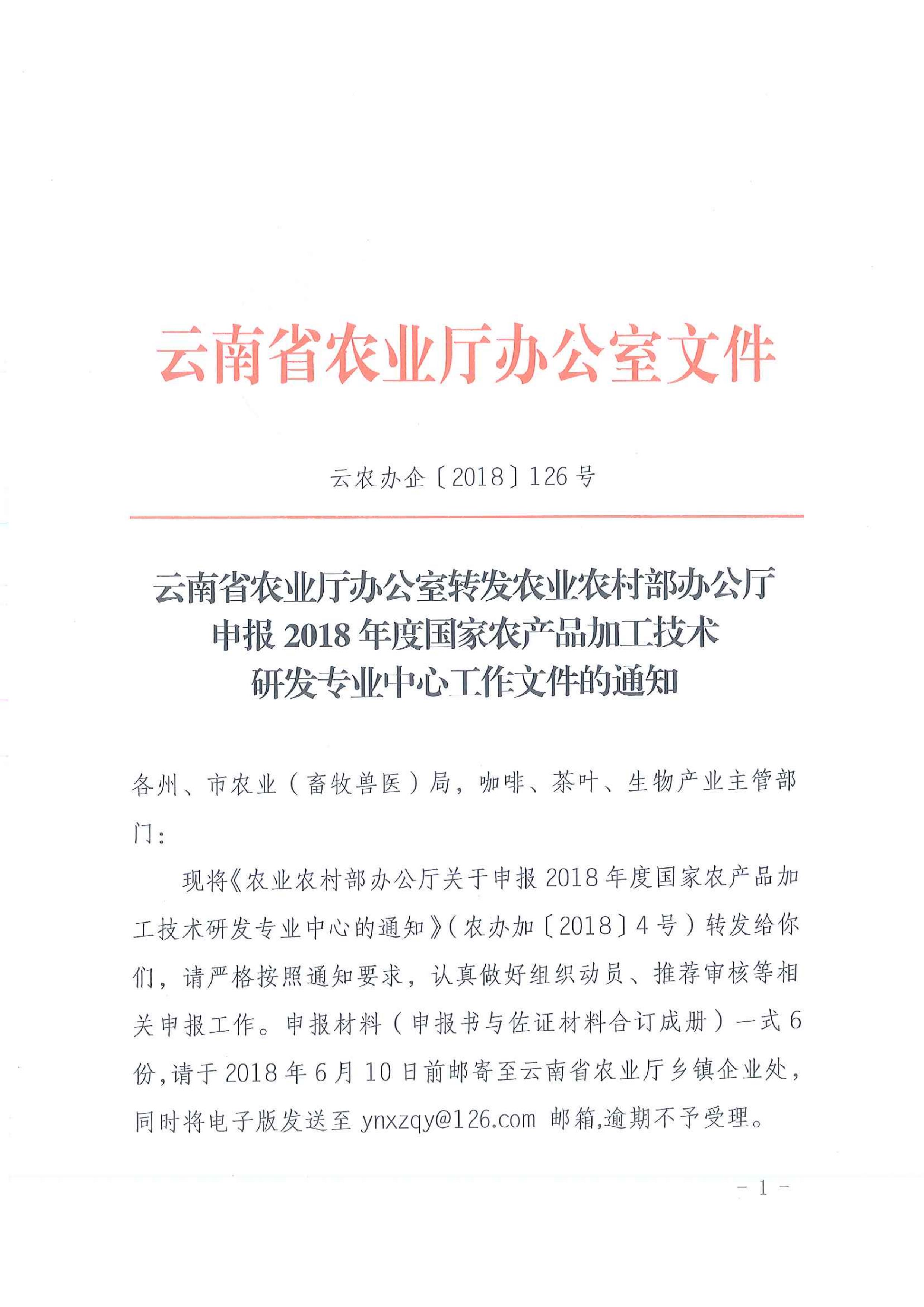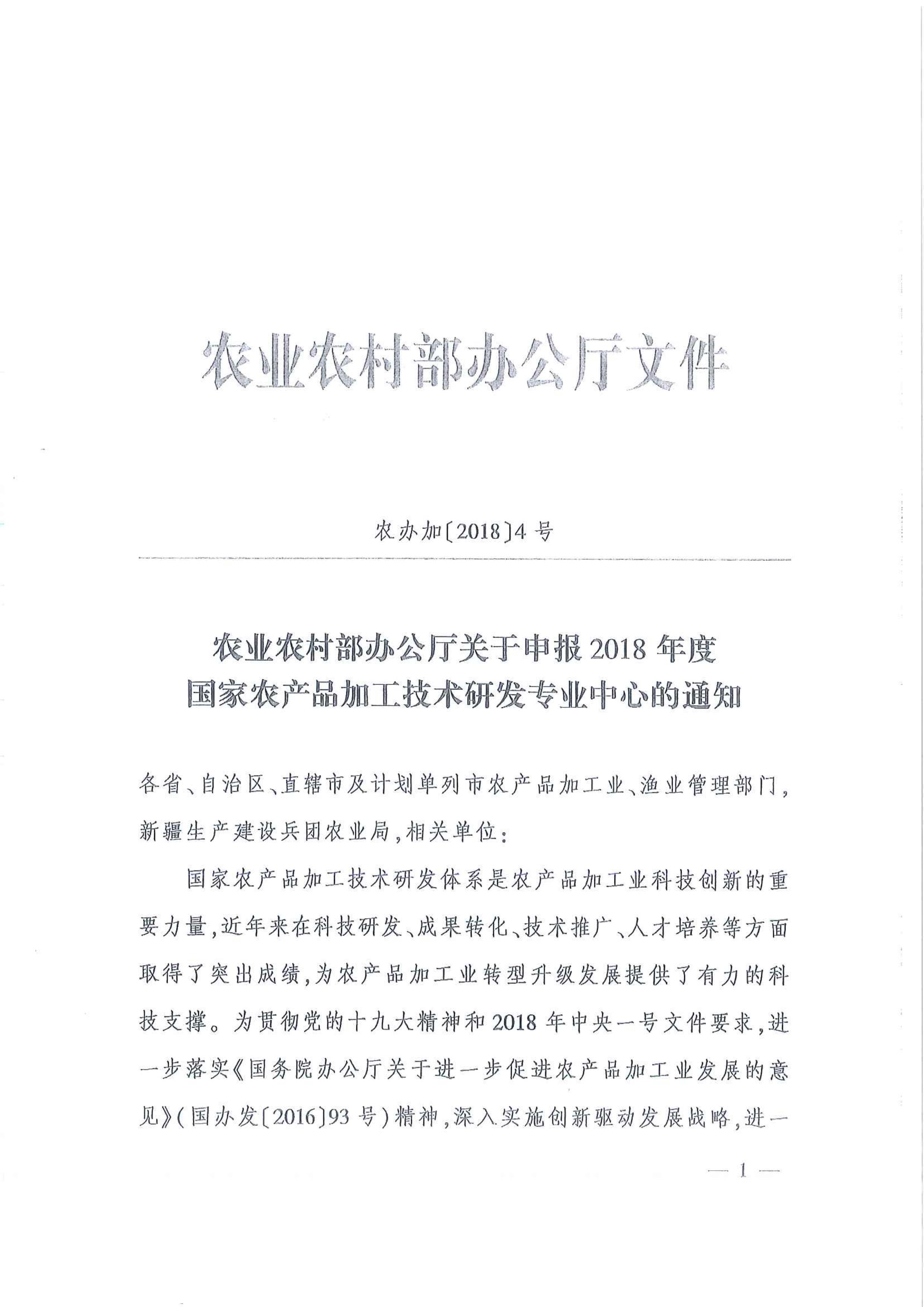云南省農(nóng)業(yè)廳辦公室轉(zhuǎn)發(fā)農(nóng)業(yè)農(nóng)村部辦公廳申報(bào)2018年度國(guó)家農(nóng)產(chǎn)品加工技術(shù)研發(fā)專業(yè)中心工作文件的通知