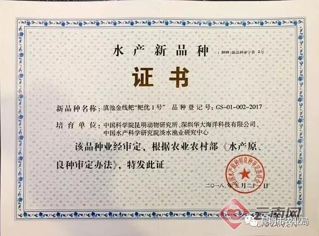 日前,由中國科學(xué)院昆明動(dòng)物研究所聯(lián)合深圳華大海洋科技有限公司、中國水產(chǎn)科學(xué)研究院淡水漁業(yè)研究中心研發(fā)培育的新品種——滇池金線鲃“鲃優(yōu)1號(hào)”,正式獲農(nóng)業(yè)農(nóng)村部的官方認(rèn)定,在水產(chǎn)種業(yè)發(fā)展論壇上獲得農(nóng)業(yè)農(nóng)村部頒發(fā)的水產(chǎn)新品種證書。這標(biāo)志著滇池金線鲃?dòng)型麑?shí)現(xiàn)規(guī)?;虡I(yè)養(yǎng)殖。