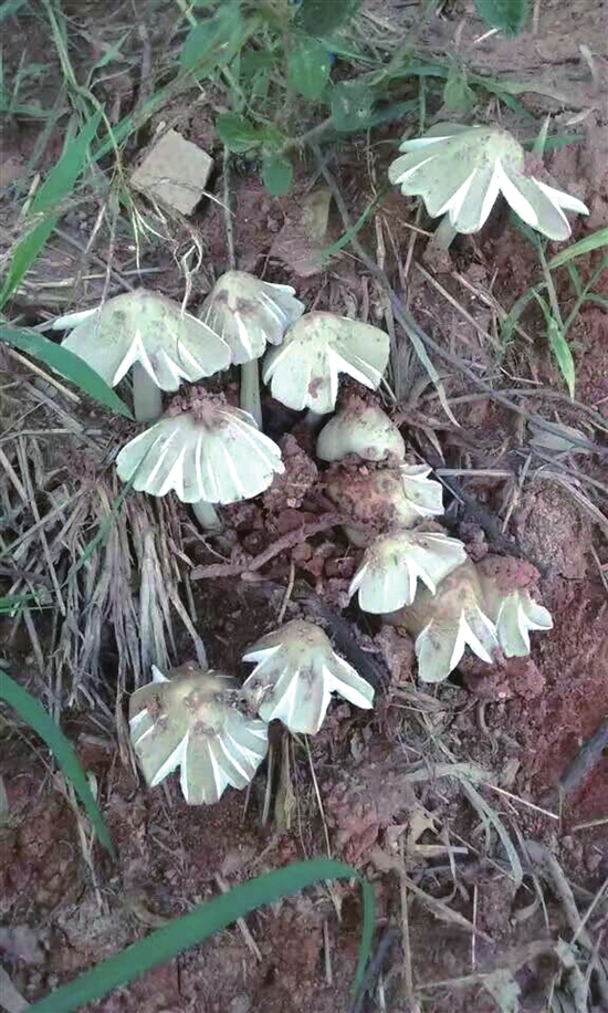 包包村副主任講了一個關(guān)于雞樅的故事:包包村的雞樅是獨雞樅,每窩只出一支雞樅,大的約七、八兩重,有鋤頭把粗,小的也有二、三兩重,有鐮刀把粗。雞樅開花的時候,猶如一頂美麗的小草帽散落在山間,遠(yuǎn)遠(yuǎn)看去讓人激動不已。沒有開花的雞樅像一顆火箭頭,高高聳立在草叢中。最開心的是撬雞樅窩,每當(dāng)雞樅窩被打開,便會看到一個指頭大小、全身潔白的螞蟻王,領(lǐng)著成千上萬針頭大小的小白螞蟻在忙碌,它們做出像小山狀的“雞樅飯”,“雞樅飯”呈灰褐色,散發(fā)著一股清香,雞樅根就是從“雞樅飯”里長出來的。雞樅窩里還有一個橢圓型的“雞樅膽”,據(jù)說是一味尚好的中藥。