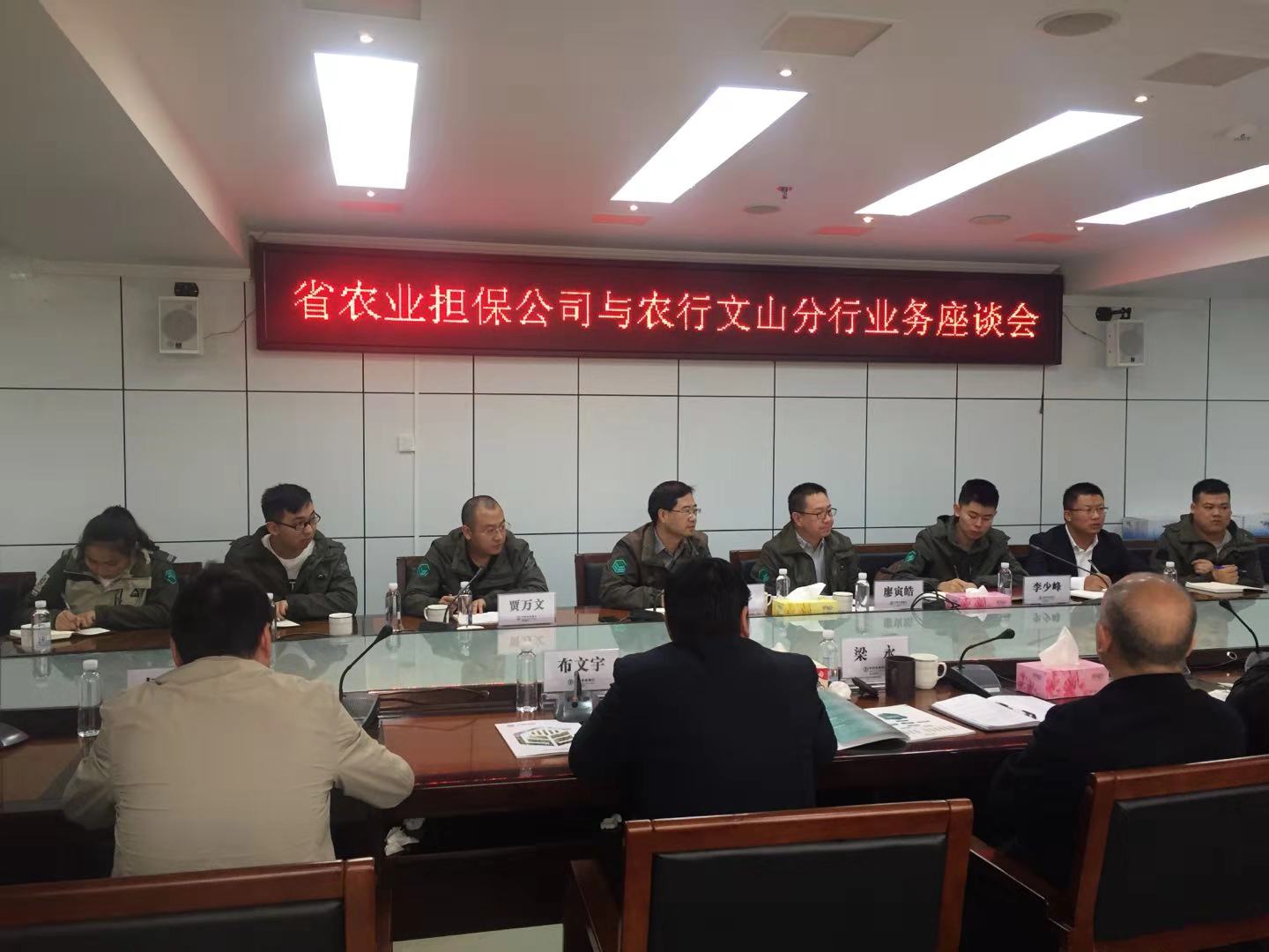 2018年11月27日,省農擔公司董事長郭影、副總經理廖寅皓、農擔二部副總經理賈萬文以及辦事處負責人李少峰帶領文山、硯山辦事處人員前往農業(yè)銀行文山州分行參加座談。出席座談的有農行州分行梁永行長、布文宇副行長以及各分管部門領導。