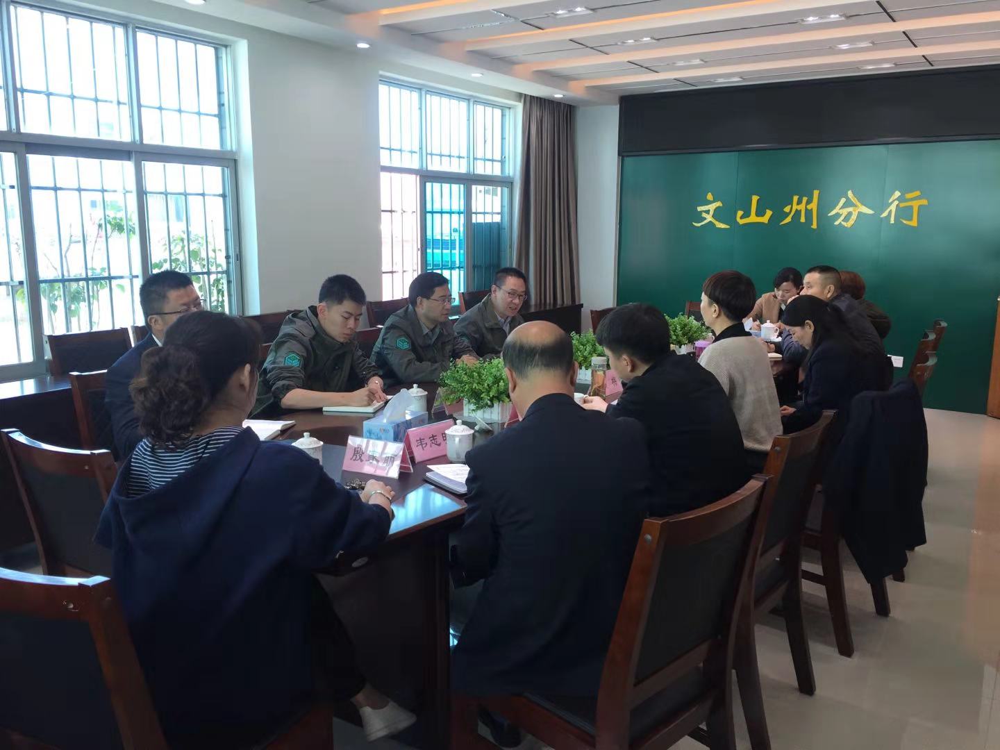 會后,董事長一行又趕往郵儲銀行文山州分行交流座談,與會領導有郵儲銀行州分行賀梅副行長、文山市支行行長殷家麗。賀梅副行長為農擔切實解決涉農企業(yè)融資困境表示感謝,并表示愿意一如既往與農擔保持緊密伙伴關系。殷家麗行長贊賞農擔是一支朝氣蓬勃的隊伍,針對農擔在郵儲銀行擔保體量大的特點,提出要嚴把項目風險,強化責任意識,并告誡年輕的業(yè)務人員提升廉潔意識,做清白的金融人。郭影董事長介紹了與郵儲銀行業(yè)務發(fā)展現(xiàn)狀,提出合作中存在問題,同時探討批量化產品的可行性。雙方領導的深入交流,為文山銀擔關系的良好發(fā)展打下堅實的基礎,為未來業(yè)務的增長提供了無限的契機。