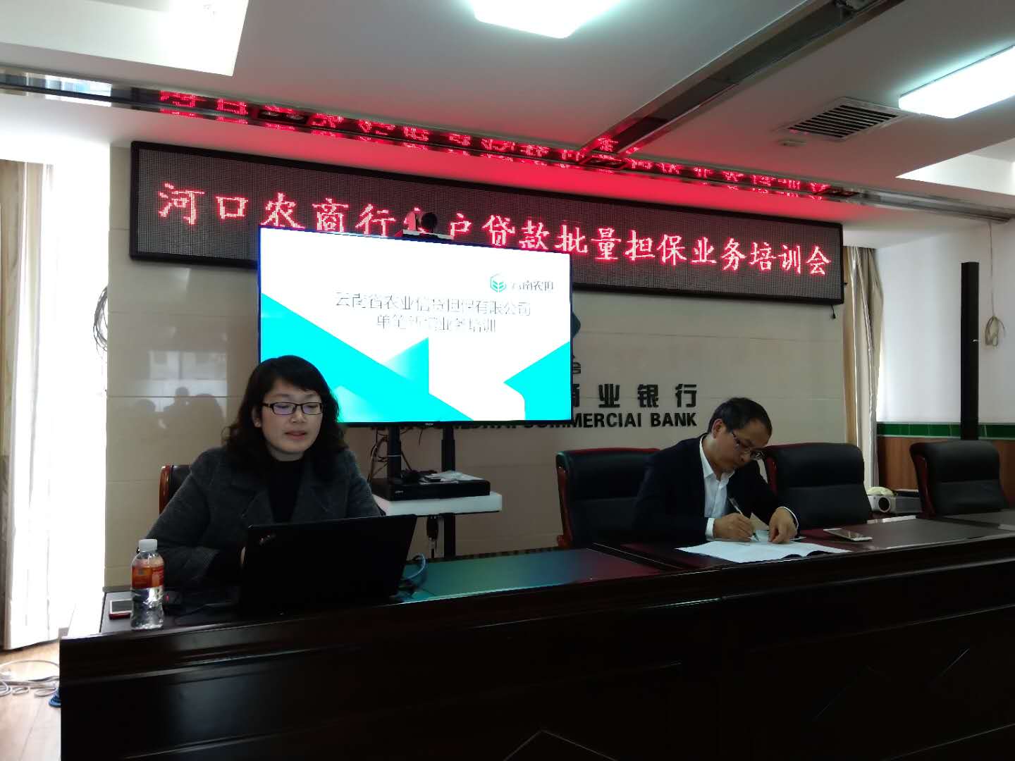 2019年1月16日下午,紅河辦事處工作人員姚燕一行受邀參加云南河口農(nóng)村商業(yè)銀行股份有限公司擔(dān)保業(yè)務(wù)培訓(xùn)會(huì),河口農(nóng)商行行長(zhǎng)李杰、信貸部經(jīng)理胡云、各支行網(wǎng)點(diǎn)信貸負(fù)責(zé)人參加了此次培訓(xùn)。