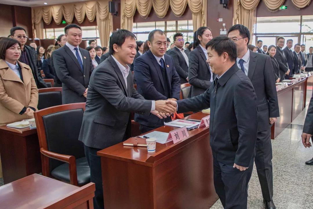 在總結(jié)會(huì)會(huì)場,張巖松廳長與省農(nóng)擔(dān)公司優(yōu)秀員工親切握手,一一詢問大家的工作情況。張巖松廳長對2018年省農(nóng)擔(dān)公司取得的不俗成績給予了充分肯定。他表示,全體農(nóng)擔(dān)員工按照省委、省政府的安排部署,開拓創(chuàng)新、銳意進(jìn)取,機(jī)構(gòu)覆蓋全省16個(gè)州市,業(yè)務(wù)覆蓋118個(gè)縣,圓滿完成新增涉農(nóng)貸款擔(dān)保50億的任務(wù),是大家共同努力、辛勤工作的成果,值得鼓勵(lì)和祝賀。