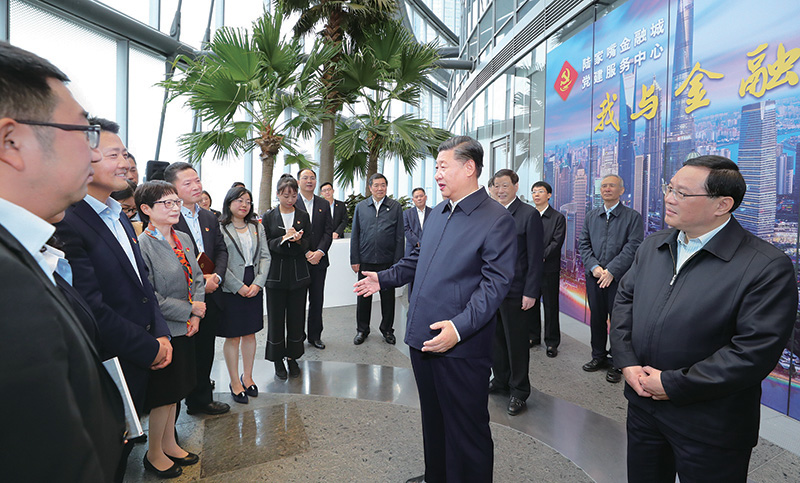2018年11月6日至7日,中共中央總書記、國家主席、中央軍委主席習(xí)近平在上??疾臁_@是6日上午,習(xí)近平在上海中心大廈22層的陸家嘴金融城黨建服務(wù)中心,同正在聯(lián)合開展主題黨日活動(dòng)的企業(yè)黨員親切交談。