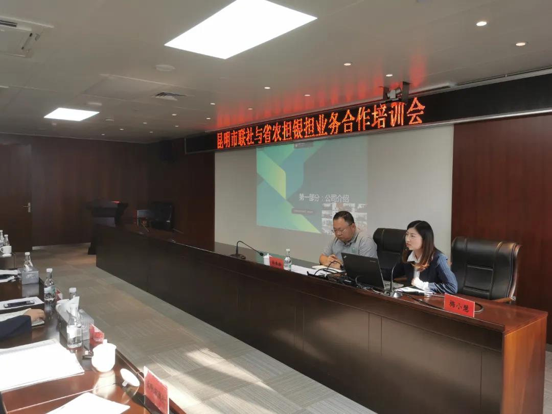 隨后,農(nóng)擔二部負責人張長浩和昆明業(yè)務團隊梅小慧全面的介紹了合作模式的準入、操作要點、產(chǎn)品優(yōu)勢及能為對方解決的實際問題,并梳理了以往合作中各家聯(lián)社遇到的疑惑點、操作中的困難點,從聯(lián)社角度、經(jīng)辦人員的角度進行了全面的講解。現(xiàn)場雙方積極交流,各聯(lián)社紛紛提問,針對現(xiàn)場提出的問題我方進行了詳盡的解答。
