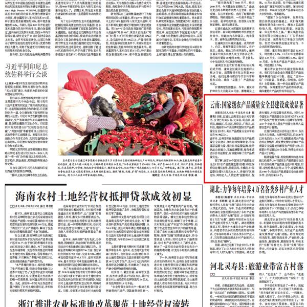 11月17日《農(nóng)民日?qǐng)?bào)》刊發(fā)文章報(bào)道云南的國(guó)家級(jí)農(nóng)產(chǎn)品質(zhì)量安全縣建設(shè)取得良好成績(jī)。