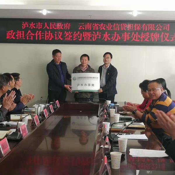 10月24日上午,云南省農(nóng)業(yè)信貸擔(dān)保有限公司瀘水辦事處授牌儀式在瀘水市人民政府舉行。